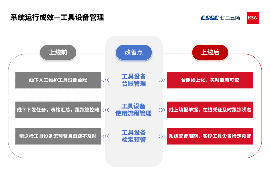 ![]() 图 工具设备管理模块上线前后对比