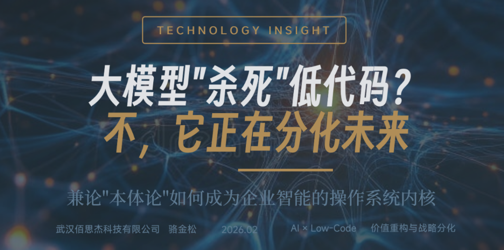 新生:运行时模型的不可替代性 运行时路线低代码的锚点是“如何定义、承载并执行业务逻辑本身”。这是一个AI需要依赖,而非能替代的“基础运行环境”。运行时模型驱动路线的价值,在AI的浪潮中被重新发现并急剧放大。AI对运行时模型驱动平台不仅不会替代,而是“增强性赋能”。这个基座为AI解决了在企业中落地的两大核心痛点: ① “听不懂”业务:AI理解自然语言,但不懂企业里“工单”、“BOM”、“OEE”的精确含义及其复杂关联。运行时平台构建的语义层(本体论),为AI提供了一部持续更新的《企业业务百科全书》。 ② “动不了”系统:AI可以给出建议,但无法安全、可信地操作生产线或修改生产工单。运行时平台的执行引擎,为AI的决策提供了受控、可审计的“操作手柄”。在漆面气泡的案例中,闭环得以形成:AI基于语义层理解事件全貌,分析根因(如“特定涂料批次与当前湿度参数不匹配”),并通过执行引擎直接下发指令(“锁定该批次涂料”、“微调烘干炉参数”)。AI成为系统的“超级用户”,而系统则成为AI可靠、可信的“四肢”。